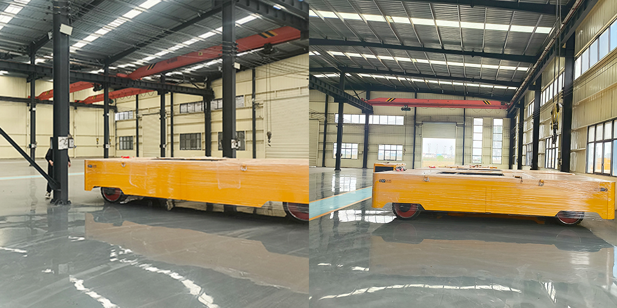 Trackless transfer cart has the flexibility and maneuverability of transporting materials unmatched by other types of transfer carts! The trackless transfer cart is powered by battery and can run on flat and hard roads inside the factory without laying steel rails on the ground. This type of transfer cart is used for transitional transportation in multiple workshops, which is more convenient than rail transfer cart and can greatly improve work efficiency!